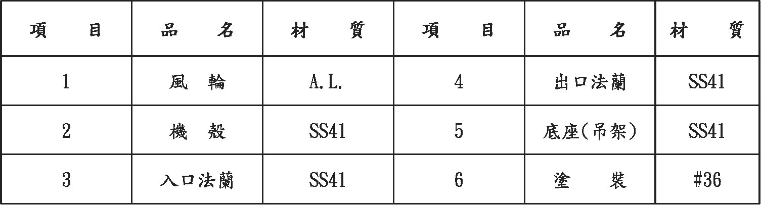 體積小,不佔空間,用重力壓之鑄鋁製葉輪,葉片角度可調整,配合場所之風量、靜壓